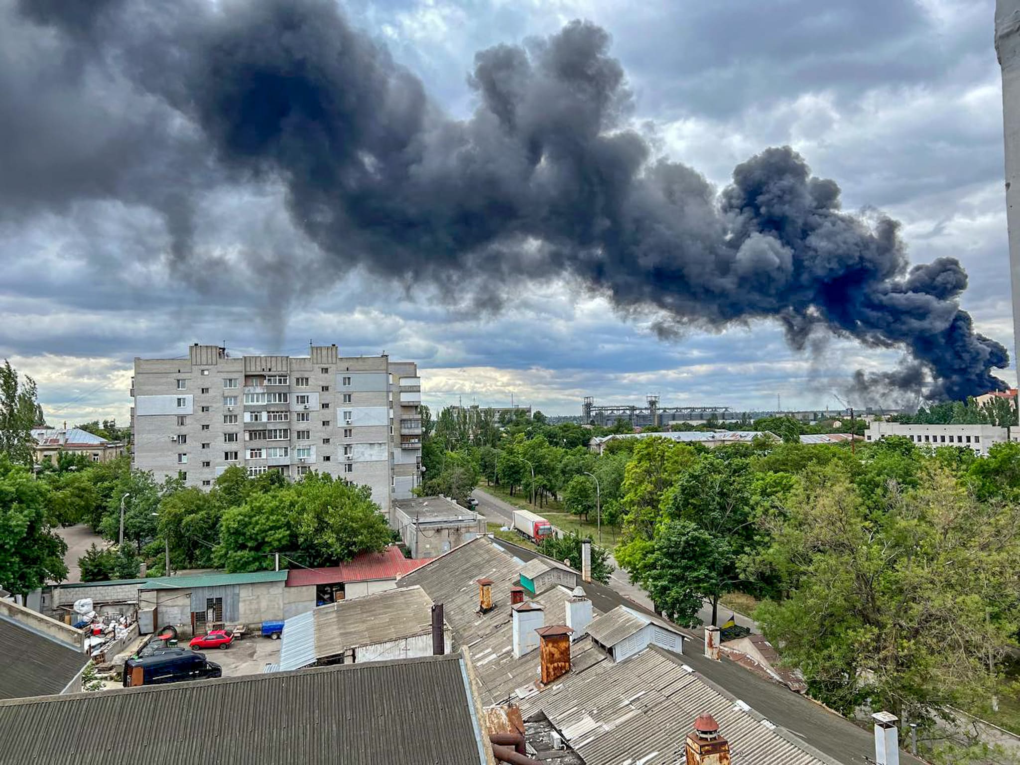 Oprócz ciągłych ataków artyleryjskich Mikołajów regularnie doświadcza bombardowań pociskami manewrującymi. Podczas ostatniego ataku okupanci „zdemilitaryzowali” zbiornik oleju słonecznikowego, osiedle mieszkaniowe i prywatne lokale biznesowe. Po tym, jak rakieta uderzyła w zbiornik, olej się zapalił. Kłęby czarnego dymu były widoczne we wszystkich rejonach Mikołajowa, także tych odległych.